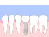 歯のない部分にのみ人工の歯根(フィクスチャー)を埋め込み、歯(歯冠)を取り付けます。 |