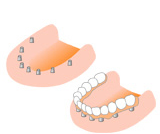 数本のインプラントを埋め込み、入れ歯を顎の骨に固定させます。 |